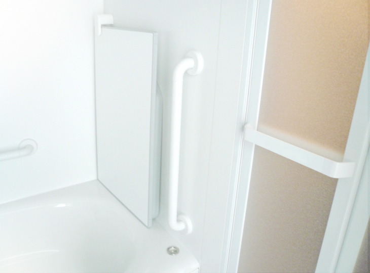 浴槽への出入り時や立ち座り時、そして洗い場での移動を補助するために、縦型、横型の手すりを使用する方の身体の高さや動線に合わせて適切な位置に設置する必要があります。