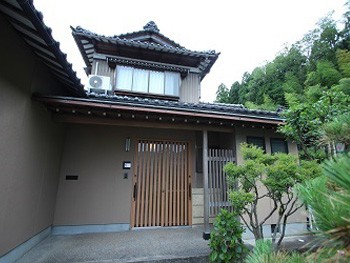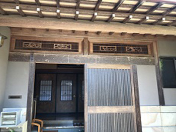 玄関は、格子状の和モダンな玄関引き戸に入替え、1階工事範囲の外壁は吹付けとしました。吹付は既存の2階と、調和するよう落ち着いた色見でまとめています。
